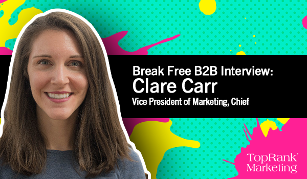 As part of our Break Free B2B interview series, TopRank Marketing Senior Content Marketing Manager Joshua Nite sat down with Clare to talk data-driven B2B content marketing, storytelling, and so much more. At the time of the interview, Clare was still part of the Parse.ly family, but has since struck out on her own. She’s now the Vice President of Marketing for Chief, which is a network and community for powerful women in the industry.